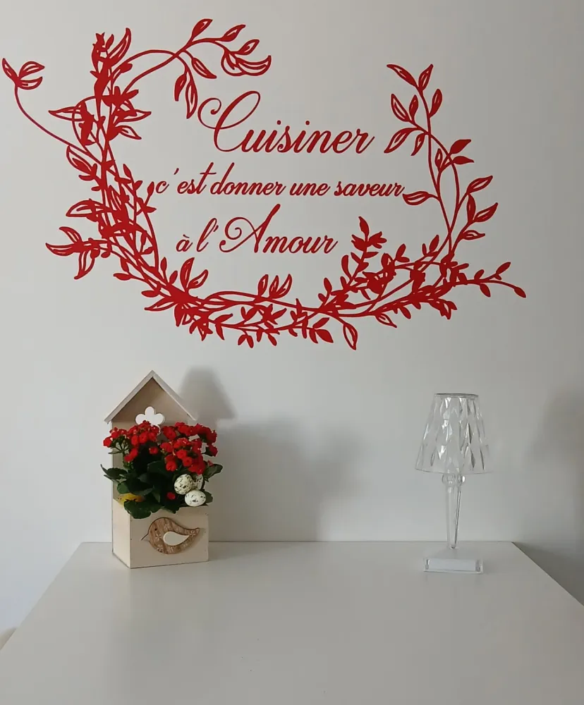 Sticker Citation Cuisiner avec Amour • 80×48 cm