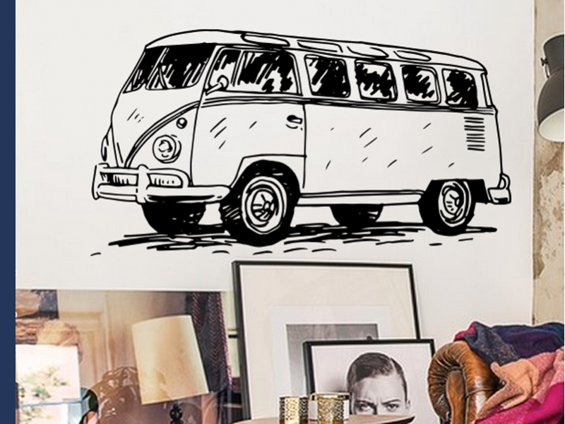 Laissez libre cours à votre inspiration et personnalisez le sticker « Combi VW » en sélectionnant la Taille, la Couleur et l'Orientation.